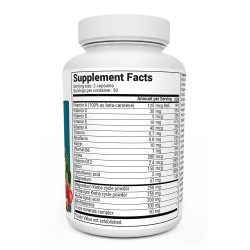 Ingredients: Microcrystalline cellulose, magnesium Krebs cycle powder , potassium Krebs cycle powder, vegetable capsule, fruit and vegetable blend (spinach (leaf), broccoli (flower & stem), carrot (root), beet (entire plant), tomato (fruit), shiitake mushroom, apple (fruit), cranberry (fruit), orange (fruit), blueberry (fruit), strawberry (fruit)), alpha lipoic acid, benfotiamine, trace minerals complex, magnesium stearate, methylcobalamin.