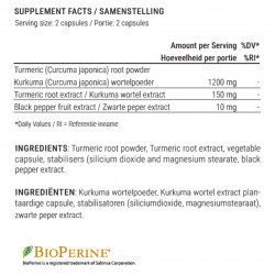 | Turmeric (Curcuma japonica) root powder | 1200 mg | ** |